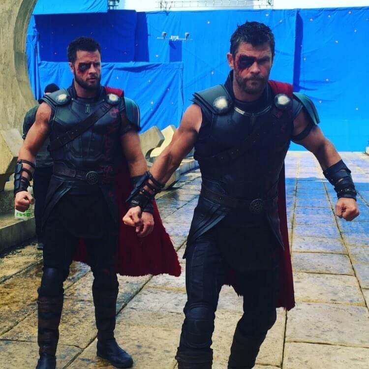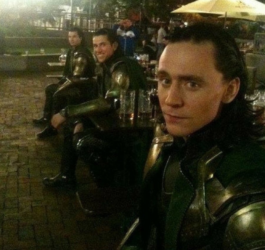 Tom Hiddleston tries to do his own stunts, which makes the lives of his doubles much easier. He does have two stunties working for him as he fits in the role of Loki, and, no doubt, this photograph of them sitting up aligned makes us double take, initially thinking it’s a simple mirror trick.