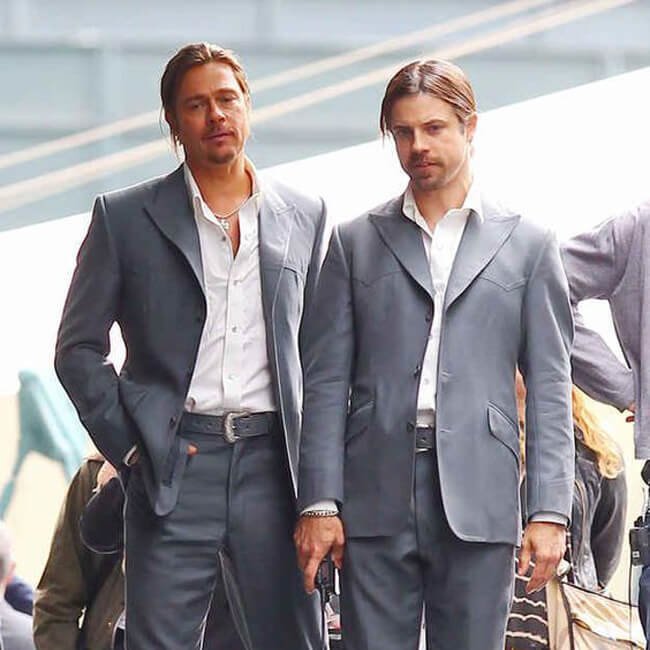 Brad Pitt and his stunt double stand shoulder to shoulder in the making of the crime-thriller film, The Counselor. This was shot in 2013, and Pitt played the role of a drug dealer, which means a lot of action for his stuntman. His unnamed double looks a little bit like him, although he’s a few inches shorter.