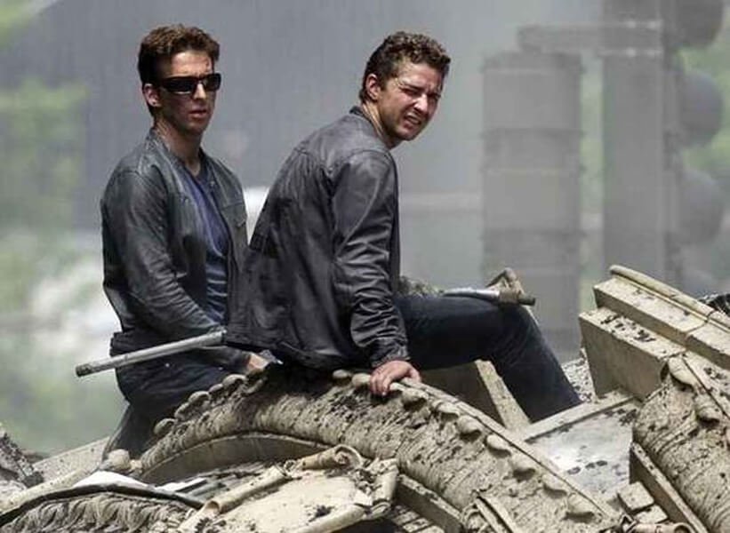 Here they are together, photographed amidst a whole lot of rubble. LaBeouf had also hit a prop while filming a scene that required some stitches. What actors would do without their stunts, we cannot imagine.