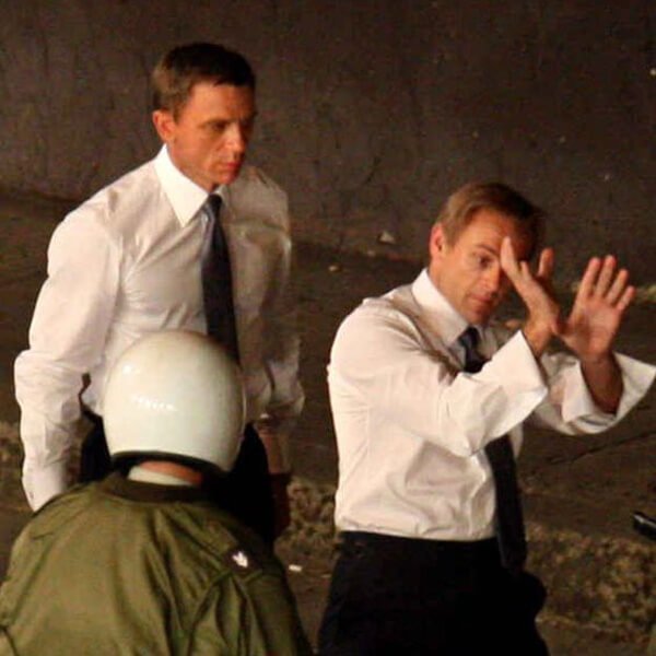 The stunts he performed during the making of Casino Royale are deemed one of the best Bond stunts ever. When he’s not jumping from one building to the next, here he can be seen taking tips from his double, practicing their moves.