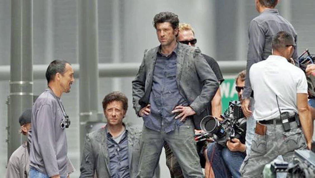 Patrick Dempsey has experience playing doctor, receiving critical acclaim for his role in Grey’s Anatomy. Did you know he also auditioned for the role of Dr Chase in House? He’s now moved on from those roles, and in this picture he’s in the middle of the set of Transformers: Dark of the Moon, tattered and all, with his stunt double looking as far away into the distance as he is.