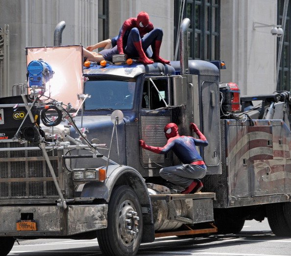 Not all heroes wear capes, they say, but Spider-man wearing a pair of casual pants in action can be a bit too much to digest. This photograph was taken during the making of The Amazing Spider-Man 2, a film that performed below commercial expectations in 2014. And who knows why Spidey’s stunt double was wearing pants? What was he up to?